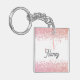 Rose Gold Metal Glitter Monogram Name Key Ring