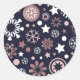 Rose gold metallic snowflakes, winter seasonal classic round sticker