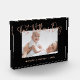 This lovely Mother's Day photo block for the first time mother features a dark, black background with faux rose gold, modern script typography that says "First Mother's Day." Add a photo of her and the baby, with room to personalise with names and year.
