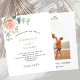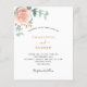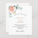 Decorated with a rose gold and blush pink floral, rose flower and green watercolored eucalyptus leaves, sprigs, greenery and faux gold sprigs. Personalise and add your names and wedding details.