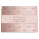 Elegant and timeless, using your monogram as a pattern. A faux rose gold metallic looking background. Personalise and add your monogram letters. Your family name's initial in the middle with a capital letter. Add your names and the wedding date. Dark rose gold text.