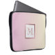 This laptop sleeve features a rose gold monogram in a marble frame on a girly pink to vanilla gradient background.