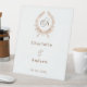 Rose gold monogram wreath wedding welcome pedestal sign