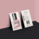 Modern, stylish, chic Nail Technician business card. The design features nail polish bottle with rose gold nail polish on a bright background, the typography script ''nails'' and name / salon name on the front. Personalise further with your contact details, social media, and qr code on the back.
