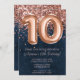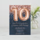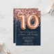 Rose Gold Navy Blue 10th Birthday Party Invitation