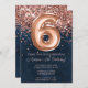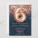 Rose Gold Navy Blue 6th Birthday Party Invitation