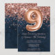 Rose Gold Navy Blue 9th Birthday Party Invitation
