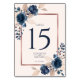 Rose Gold Navy Blue Dusty Pink Floral Wedding Table Number