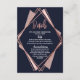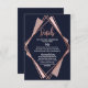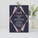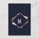 Elegant, chic, and modern with a retro vibe, faux printed rose gold geometric diamond shape outline on navy blue, mauve, and blush pink diamond cutout, Wedding information details card. This classic and sophisticated design is perfect for the classy, stylish, and trendy graduate. Personalise with your own message on the front and a customised monogram initial on the back. All photo print design.