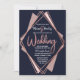 Elegant, chic, and modern with a retro vibe, faux printed rose gold geometric diamond shape outline on navy blue, mauve, and blush pink diamond cutout, wedding invitations. This classic and sophisticated design is perfect for the trendy and stylish marrying couple. Personalise with your own message on the front as well as a customised monogram initial on the back. All photo print design.