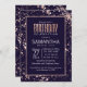 Elegant, chic, and modern faux print rose gold outline and paint splatters on navy blue, Birthday party invitations. This classic and sophisticated design is perfect for the classy, stylish, and trendy Birthday individual. Personalise with your own message on the front and customised monogram on the back. All photo print design