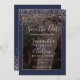 Rose gold confetti navy blue typography wedding save the date , add your couple photo.