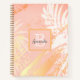 An elegant, modern tropical summer abstract pattern. Rustic coral, rose gold pink background, and white palm tree leaves. Decorated with faux gold brush strokes. Add your name and monogram letter. A college ruled notebook for girls and women.