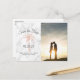 Ask your guests to save your wedding date with this simply elegant design featuring your photo, modern script, charcoal grey text and a rose gold copper artistic palm tree over a slightly transparent white and grey marble background. Customise it with your photo, wedding date, names and location on the front along with your message, names and return address on the back.