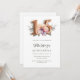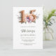 A modern, stylish and glamourous invitation for a Quinceañera. White background, decorated with a peach and purple watercolored flower. The name is written with a modern green coloured hand lettered style script. Personalise and add your party details. Number 15 is written with a balloon style font, script.