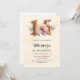 A modern, stylish and glamourous invitation for a Quinceañera. A peach watercolored coloured background, decorated with a peach and purple watercolored flower. The name is written with a modern hand lettered style script. Personalise and add your party details. Number 15 is written with a balloon style font, script.