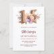 A modern, stylish and glamourous invitation for a Quinceañera. White background, decorated with a peach and purple watercolored flower. The name is written with a modern dark rose gold coloured hand lettered style script. Personalise and add your party details. Number 15 is written with a balloon style font, script.