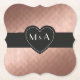 Wedding modern chic elegant rose gold geometric low poly design. Pink gold metallic effect and black heart frame with initial letters of the couple.
