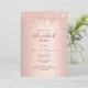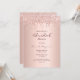 On front: A rose gold faux background. Decorated with rose gold, pink drips, paint drip look. Templates for the bride's name and party details. The name and the text: Bridal are written with a hand lettered style script, black coloured letters.
