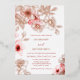This elegant floral wedding invitation features a real rose gold foil line art flowers and pink cherry blossoms on a white background. Your Photo on the backside