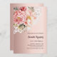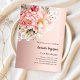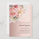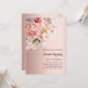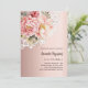 An elegant 21st (or any age) birthday invitation for women. A rose gold gradient background decorated with pink and rose gold florals, roses and lace. Personalise and add a name and party details.