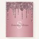 Rose Gold Pink Glitter Drips Monogram Recipe Notebook
