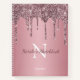 Rose Gold Pink Glitter Drips Monogram Sketchbook Notebook