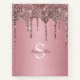 Rose Gold Pink Glitter Drips Sparkle Monogram Name Notebook