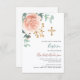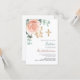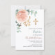 Rose gold pink greenery gold cross baptism invitation