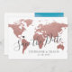 Trendy rose gold pink faux foil texture world map save the date card for a destination wedding with a moveable heart location marker and your engagement photo alongside cute and elegant modern typography that's pretty and minimalist. Perfect for tropical, beach, island, city, mountain and adventure destination wedding locations all over the world. Click CUSTOMIZE FURTHER to move the heart, change the background and text colour, change fonts. Check our designer shop for coordinating items!