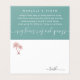 Beachy pink rose gold palm trees on an elegant beach theme wedding, shower, or dinner party place card with a turquoise teal blue donation poem on the back. But you can edit anything and select background colours to work with your party, or remove the text on the back.