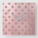 Rose Gold Pink Shine Glam Polka Dots Modern Chic Square Wall Clock