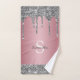 Rose Gold Pink Silver Glitter Drips Monogram Name Bath Towel Set
