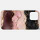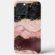 Add a touch of glam to your phone with this feminine iPhone case featuring agate pattern in various shades and textures of rose gold, burgundy, pink, and black, with gold glitter vein accents.