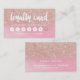 A modern, stylish loyalty card for hair and makeup artist business card with modern hand lettering style brush typography in white on a trendy and elegant pink ombre watercolor and faux rose gold glitter background.