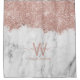 Rose Gold Pink White Marble Glitter Dust Monogram Shower Curtain