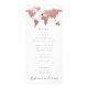 Rose gold blush pink world map travel theme menu card with a moveable and removable heart so you can pin your destination wedding location or theme, or delete it entirely for a global or general travel theme design.