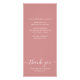 The background colour on the front and back, as well as the fonts, can be changed to match your wedding colour scheme. The back has space for a nice thank you message for your guests or cab information to help everyone get home safely.