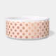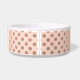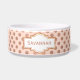Chic white ceramic pet food / water bowl, with graphics of blush and rose gold polka dot pattern. Graphics of a decorative text area, on the front, has rose coloured text ready to personalise, for your pet or as a great gift idea for any pet owner. Matching pet bed available.