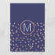 Elegant, chic, and modern faux printed rose gold polka dots and light navy blue background, wedding reception menu cards. This classic and sophisticated design is perfect for the classy, stylish, and trendy wedding reception. Personalise with your own menu on the front, along with your names and dates. Then customise the back with your monogram initial. All photo print design.