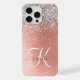 Easily personalise this trendy chic phone case design featuring pretty silver sparkling glitter on a rose gold brushed metallic background.