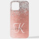 Easily personalise this trendy chic phone case design featuring pretty silver sparkling glitter on a rose gold brushed metallic background.
