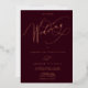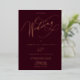 Elegant real rose gold foil, on dark red burgundy minimalist calligraphy wedding with an elegant swirls typography.