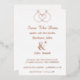 This elegant Save the Date card features a sophisticated Rose Gold line art illustration of interlocking wedding rings forming a subtle heart shape. Printed on premium white cardstock, the design utilizes a mix of classic serif and modern script fonts to highlight the couple's names, Barbara John and John Smith. Ideal for couples seeking a minimalist yet luxurious aesthetic, this template includes clear sections for the date, time (3:00 PM), and location at Queensland Gardens. The clean layout ensures all essential wedding details are scannable and stylish, perfect for a summer wedding or a formal garden ceremony.