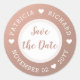 Trendy save the date stickers with a rose gold frame.Personalise with date and couple names.