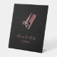 Add your details on this rose gold scissors and comb on black background design for your hairdresser business.