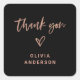 Rose Gold Script and Heart on Black | Thank You Square Sticker