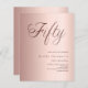 A modern, stylish invitation for a 50th birthday party.  Rose gold gradient background and the word Fifty written with elegant large script letters in dark rose gold. Personalise and add a name and party details.