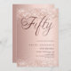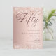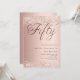 A modern, stylish invitation for a 50th birthday party. Decorated with confetti. Rose gold gradient background and the word Fifty written with elegant large script letters in dark rose gold. Personalise and add a name and party details.