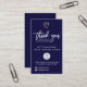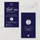 Elegant and modern white and navy blue business order thank you with a brushed script typography and rose gold glitter heart . Add your social media. With an elegant signature script font, all the colours are editable , add your logo.